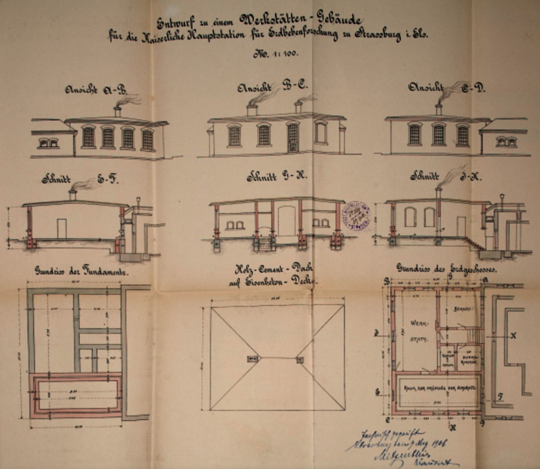Des voix s’élèvent jugeant le projet incompatible avec l’harmonie des façades et du jardin. En effet, l’ensemble du campus impérial se distingue par son élégante cohésion architecturale néo-classique. De plus, le parc arboré est considéré comme un agréable lieu de promenade. Il est proposé de positionner la station dans le parc de l’Orangerie, mais les scientifiques s’y opposent. Tout d’abord, elle serait trop éloignée de l’Université et donc des recherches liées à ces mesures mais aussi trop éloignée de l’Observatoire, seul lieu à distribuer l’heure exacte indispensable à l'exploitation conjointe des enregistrements sismologiques de plusieurs stations. De plus, les rue Goethe et de l’Université sont alors interdites à la circulation des véhicules de transport, réduisant ainsi les vibrations associées. Le site du campus est donc totalement approprié. Finalement, le pouvoir impérial tranche et fait taire les oppositions : la station sera installée sur le campus.