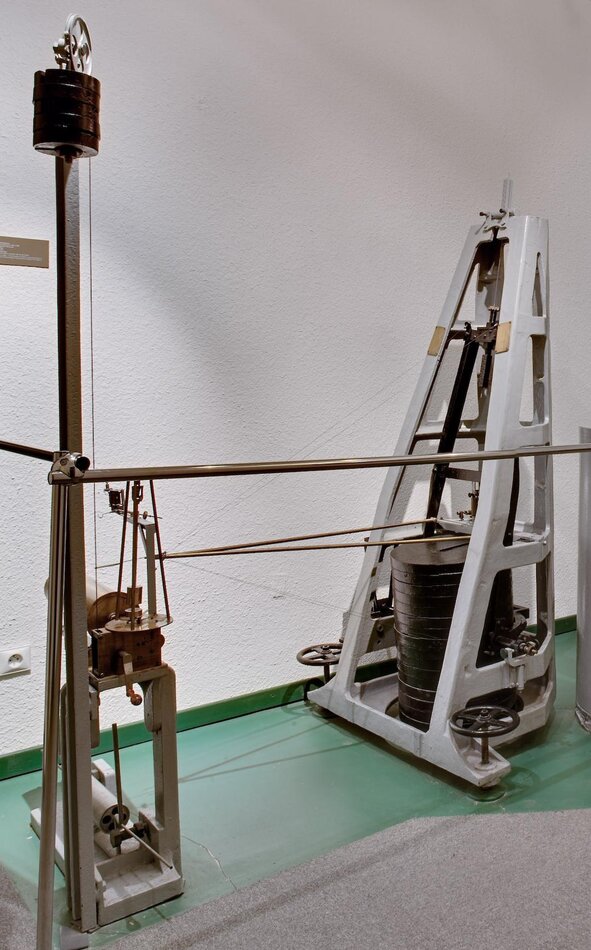 Ici, vous pénétrerez dans l'observatoire d'origine! Vous y découvrirez les instruments scientifiques ayant été utilisés par les sismologues strasbourgeois, dont les magnifiques sismomètres de Wiechert de 1903 et 1907 ou encore le grand pendule dit le « 19 tonnes ». Ils sont pour la plupart à leur emplacement d'origine.